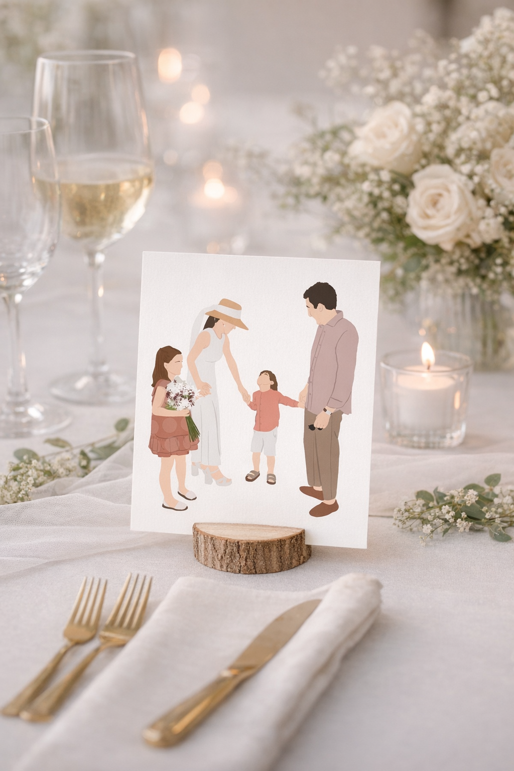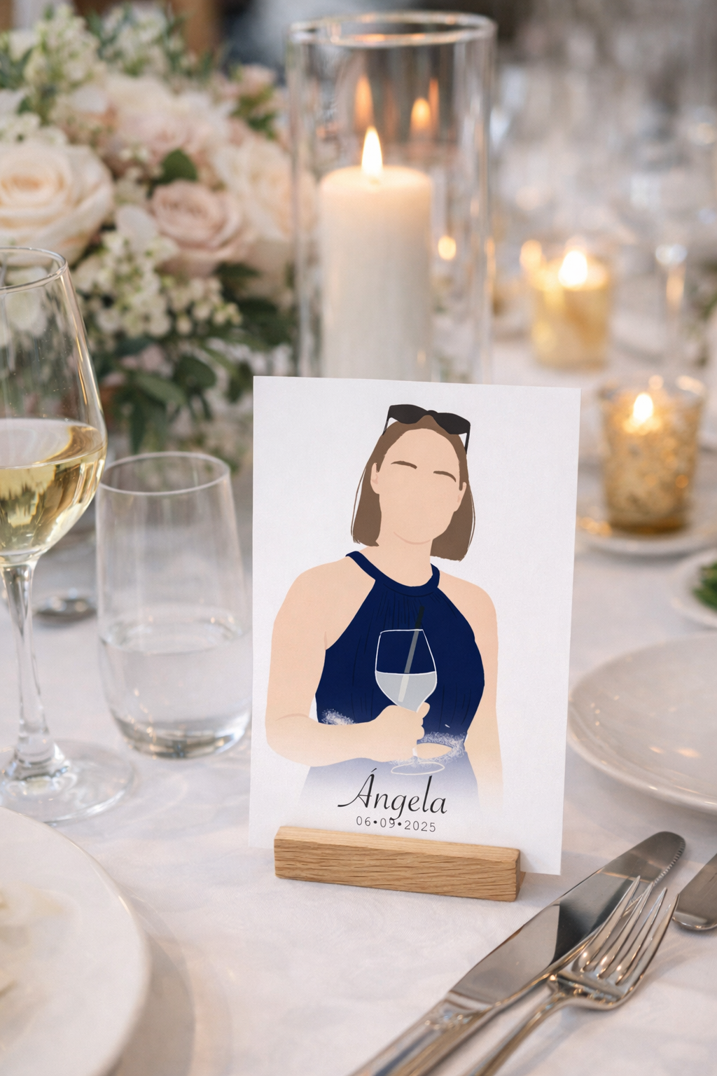 Los marca sitios son elementos decorativos y funcionales que indican a cada invitado cuál es su lugar en la mesa. Además de ayudar a la organización del evento, los marca sitios ilustrados se convierten en un detalle especial que aporta personalidad, estilo y coherencia estética a la celebración.